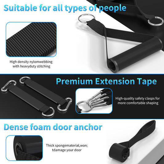 - Personal home gym: Our resistance band set includes 5 exercise bands, 1 door anchor, 2 cushioned handles, carrying case and user manual to allow you to perform the widest variety of resistance training exercises possible at home.